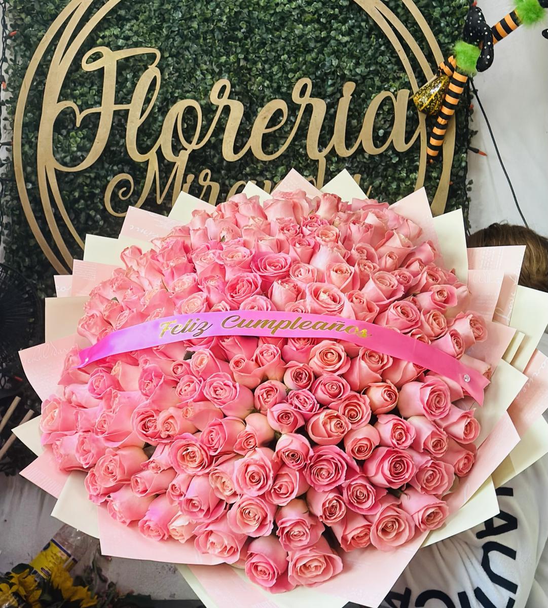 Ramo con 150 rosas rojas, blancas, fucsia, rosa hermosa, rosa pastel o combinadas (A elegir), con listón, envueltas en papel kraft, papel color negro, papel coreano color negro, blanco, rosa o durazno (Especificar en indicaciones del pedido antes de finalizar compra).